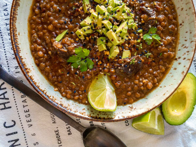 Lentejas estofadas con alcachofas
